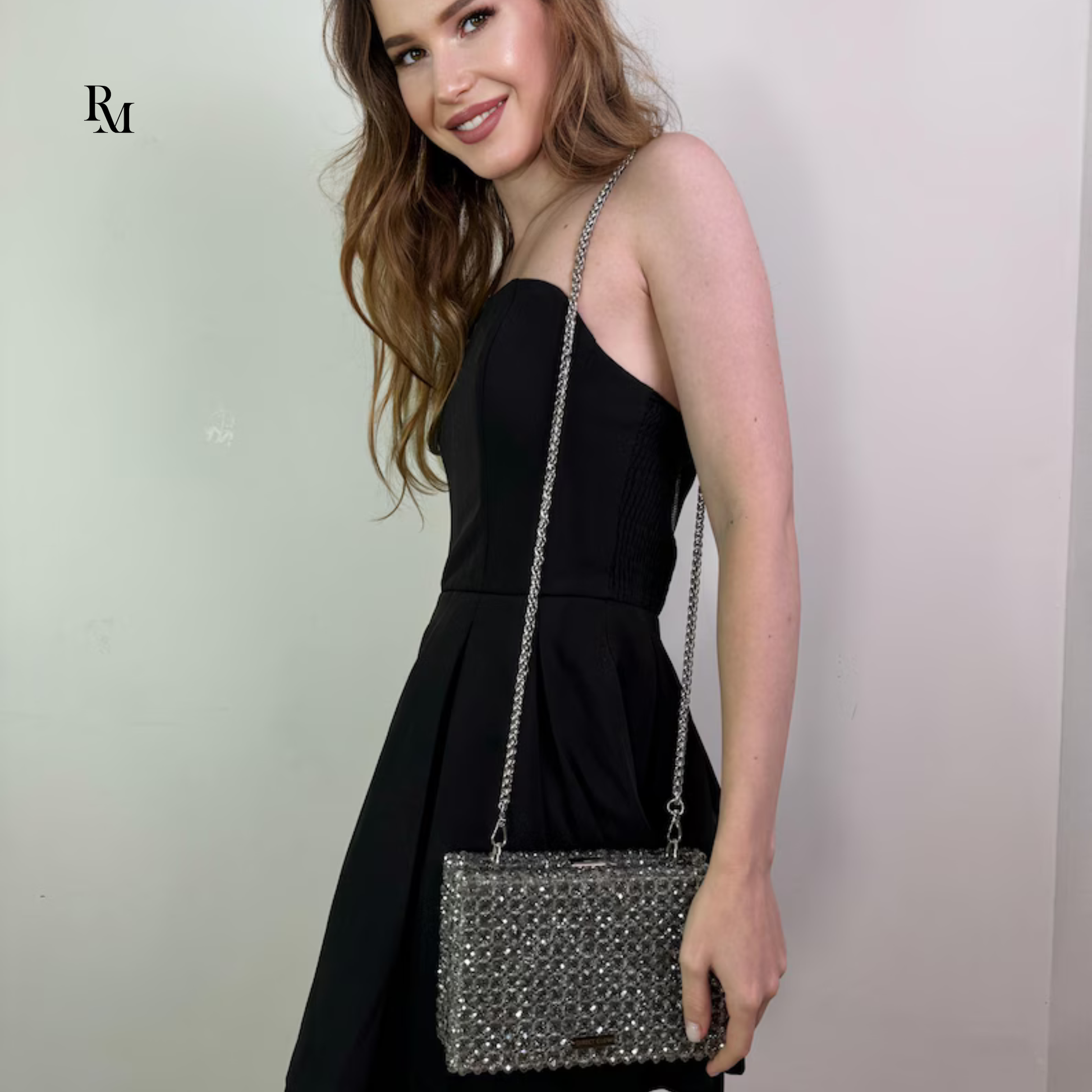Radiate elegance and sophistication with the RM Collections Handmade Crystal Beaded Box Clutch, a stunning accessory that captures the beauty of shimmering glass crystals. Expertly handcrafted, this structured box clutch is designed to dazzle under any light — making it a perfect choice for weddings, parties, date nights, and elegant soirées.