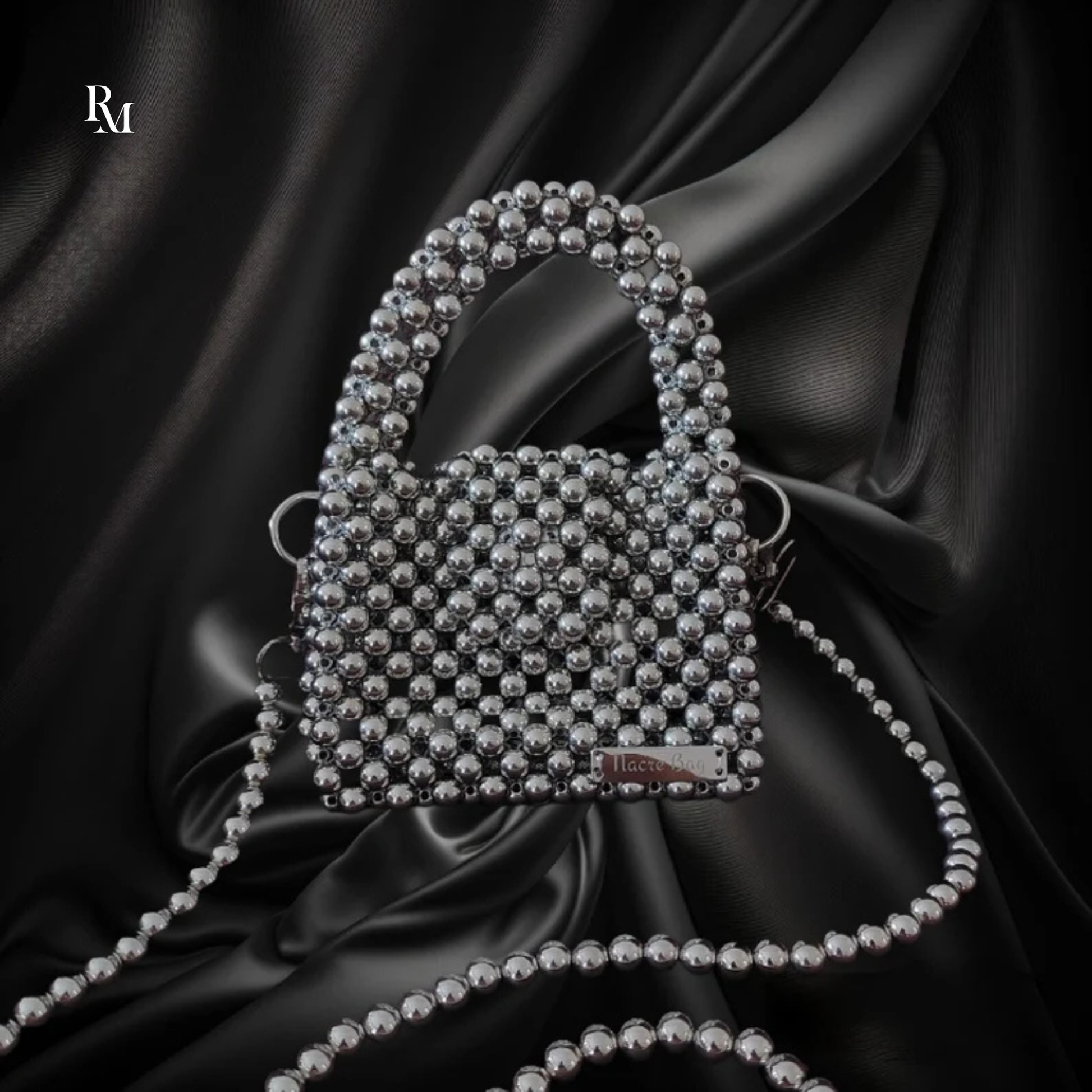 Elevate your elegance with the RM Collections Handmade Metallic Silver Beaded Crossbody Bag, a stunning blend of luxury and craftsmanship. Handcrafted from premium plated silver beads, this dazzling mini bag adds a touch of sparkle to any occasion — from weddings and engagements to stylish evenings out.